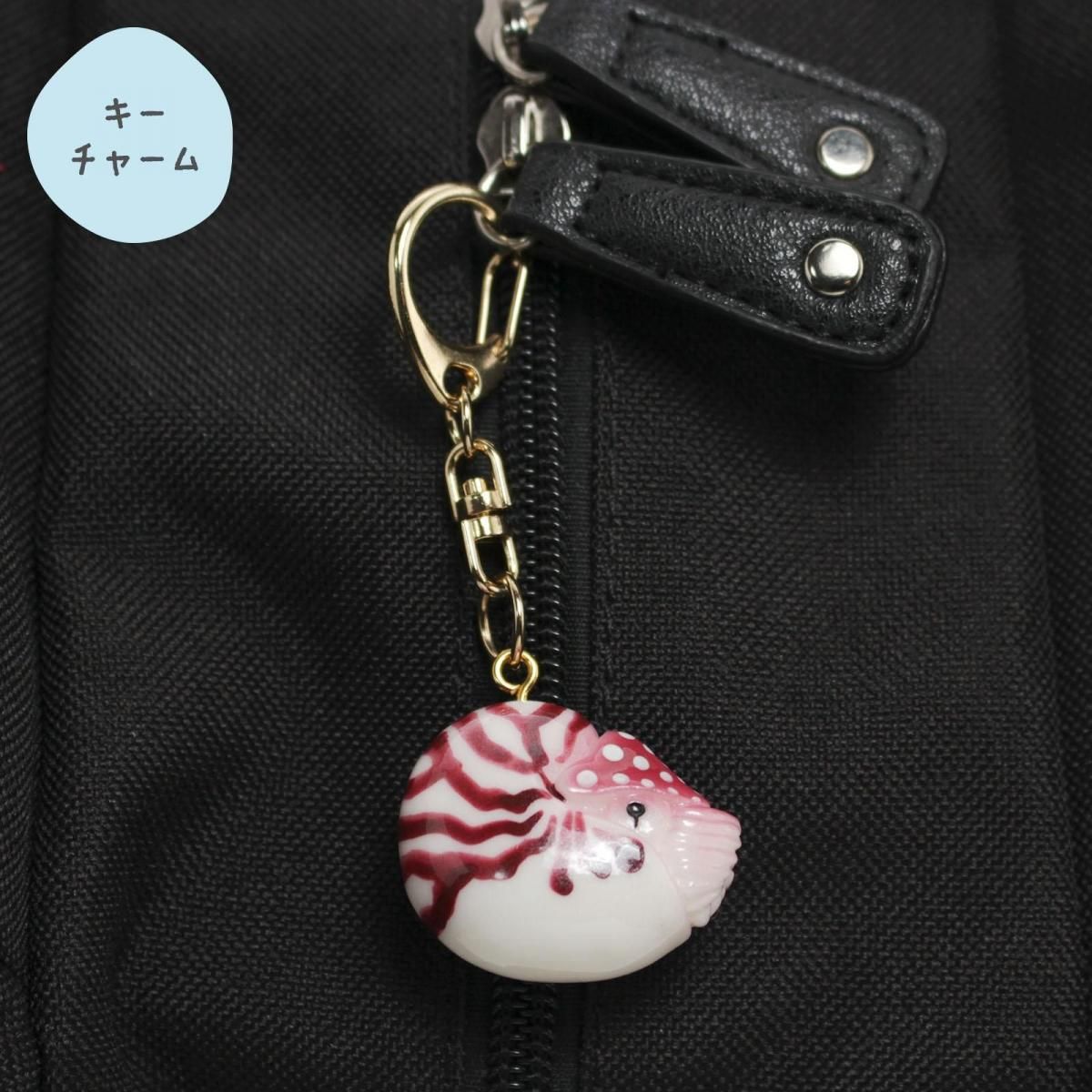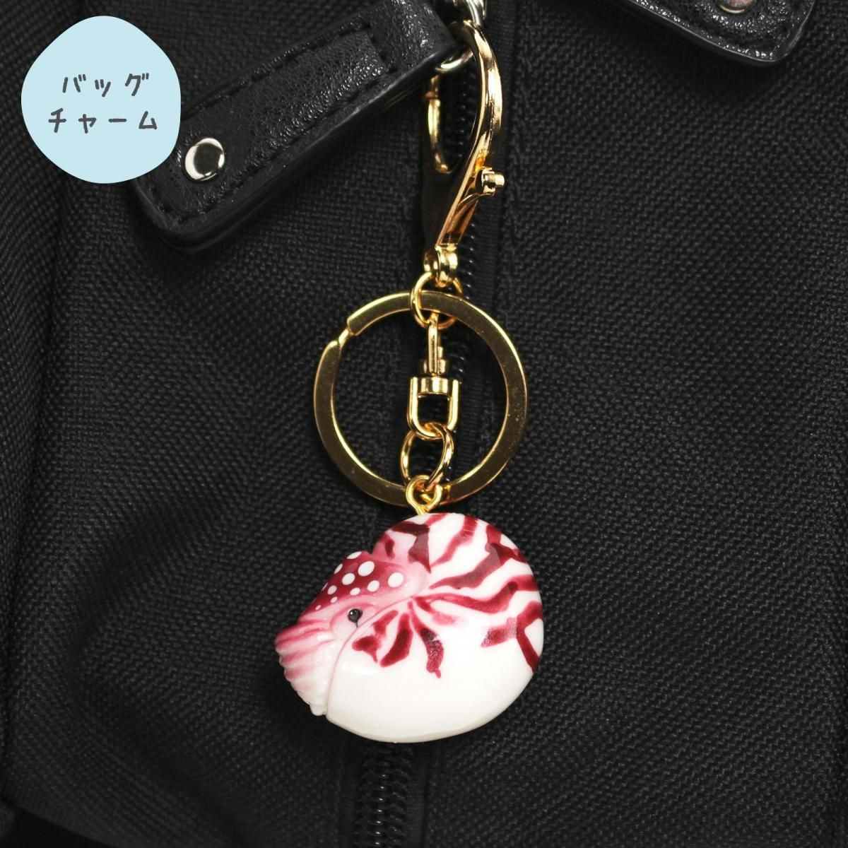 チャームとしてオウムガイを連れて歩くと、なんだかオウムガイと一緒に泳いでいる気分になる場合があります。特有の模様から、深海好きの人の目に留まりやすくイベントや水族館で会話するきっかけになるかもしれませんね。